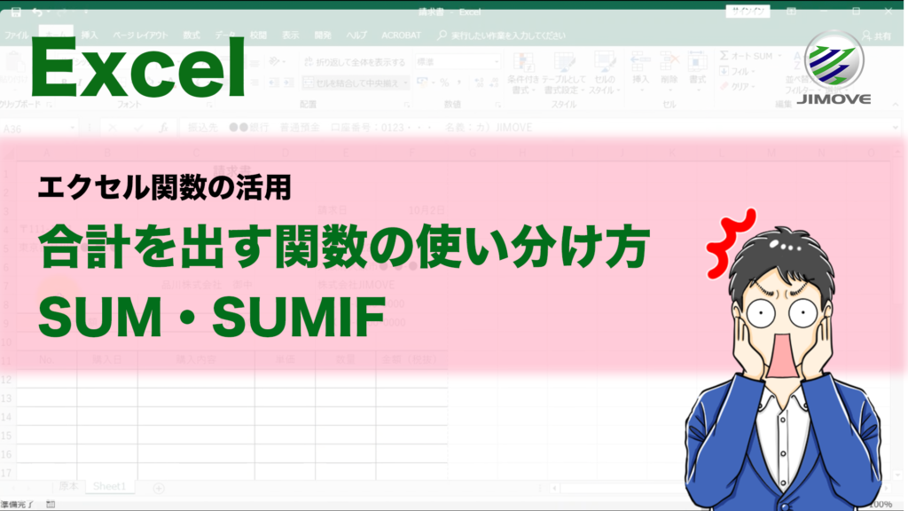 Youtubeで公開している内容をまとめたものです。 フォーマットに関数を搭載する こんにちは、JIMOVEの山口です。 今日はエクセルを使用して金額の計算方法についてご紹介します。金額は「単価 × 数量」で計算できます