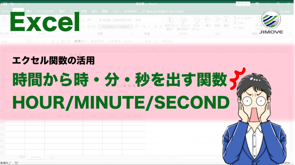 Youtubeで公開している内容をまとめたものです。 時間関数の抜き出し方 こんにちは、JIMOVEの山口です。 Excelで時間を操作するための基本的な関数について学びましょう。 時間データから時、分、秒を抽出する方法