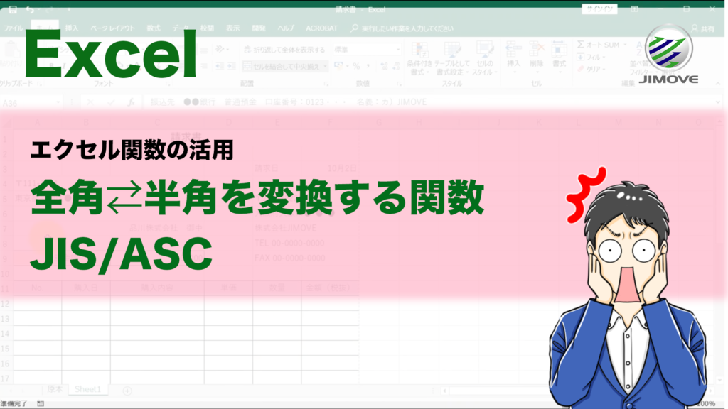 Youtubeで公開している内容をまとめたものです。 半角と全角の変換関数について こんにちは、JIMOVEの山口です。 今回はExcelでの半角文字と全角文字の変換方法について解説します。 入力されたデータが半角であっ