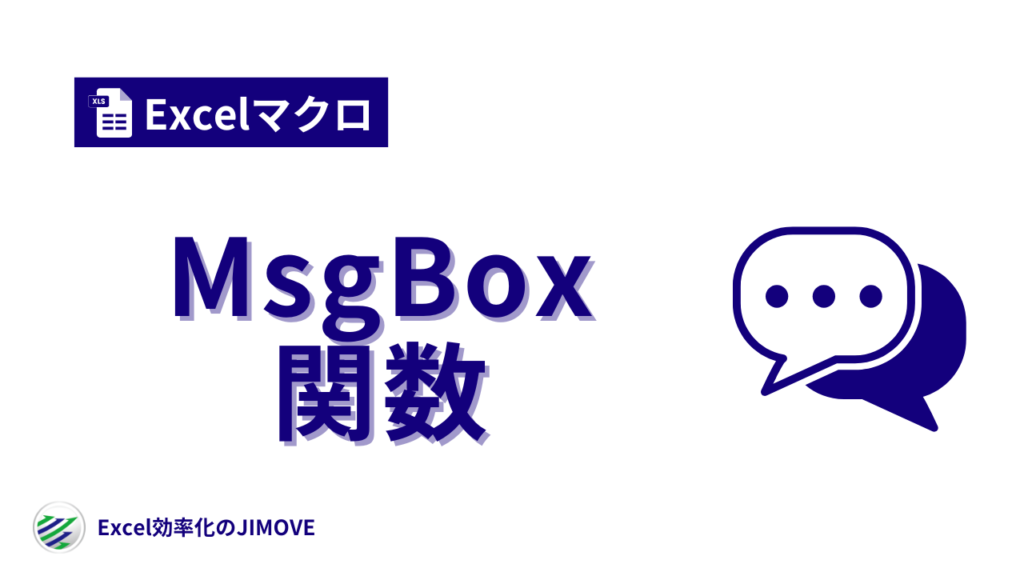 覚えたいVBAの文法【Excelマクロ】MsgBox関数 JIMOVE 山口 / 2025年1月18日 MsgBox関数の基本的な使い方 MsgBox関数は、VBAでメッセージを表示する際に使用する非常に便利な関数です。 マクロを実行して、完了しても特にメッセージは表示されません。そのため、いつ終わったかがわかりづらく、作 […]